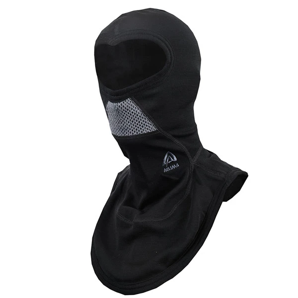 DoubleWool Balaclava er hals og lue i ett plagg. En balaclava sikrer at kald luft ikke skal komme ned i nakken og halsåpningen på yttertøyet, den er enklere å bruke enn å kombinere lue og skjerf. Den har god passform, sitter perfekt under hjelm og beskytter godt mot kulde og vind. I front er det kun ett lag med ullnetting som skal slippe ut varm luft og hindre isdannelse på innsiden av stoffet.