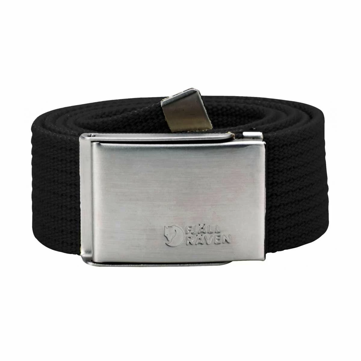 Dette er et tidløst og praktisk belte i lerretstoff med militærspenne i metall.